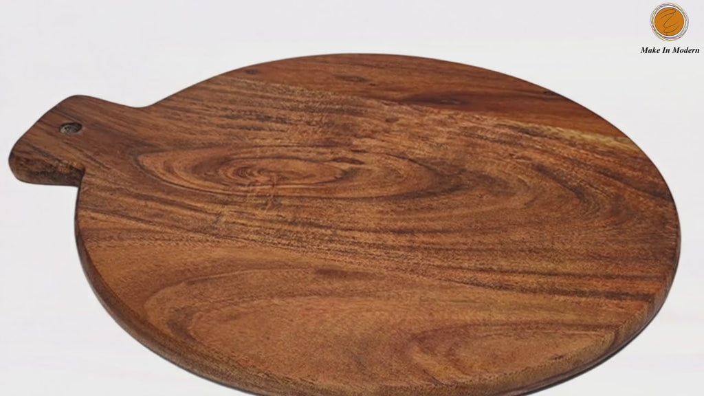 This Acacia Wood Cutting/Serving Board with Handle is perfect for everyday kitchen needs. It offers a sturdy and durable board made of premium acacia wood to chop, cut, and serve your favorite meals. Enjoy a convenient handle for easy lifting and washing.