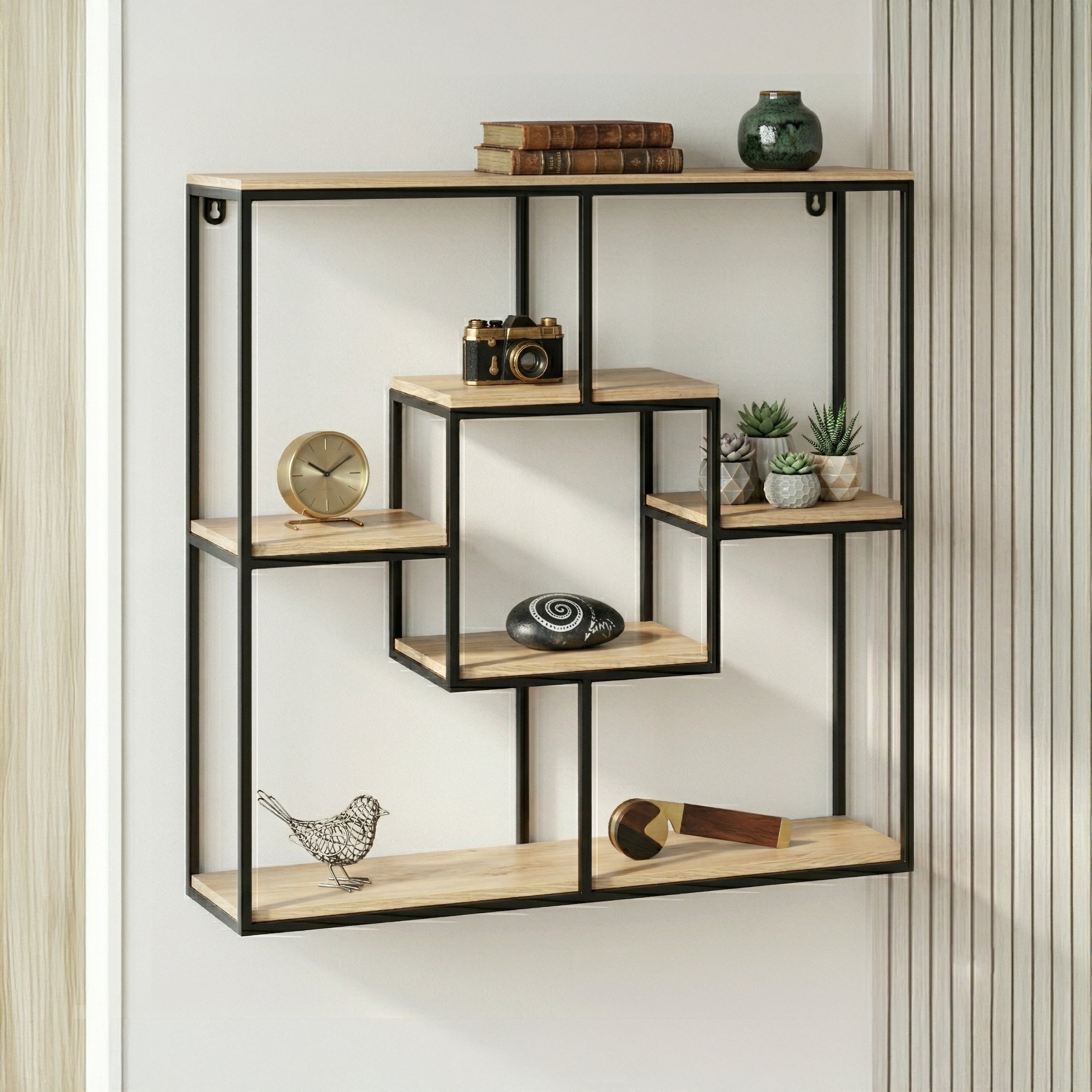 Wood & Metal Modular Wall Shelf